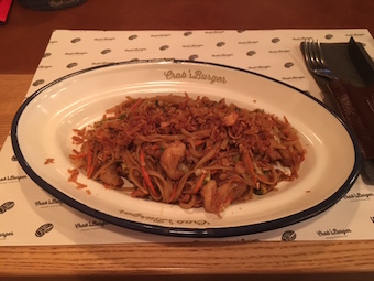 で、アジア料理からも一品。奥様がパッタイを注文。味は少々濃い目ですが、なかなか美味しい。