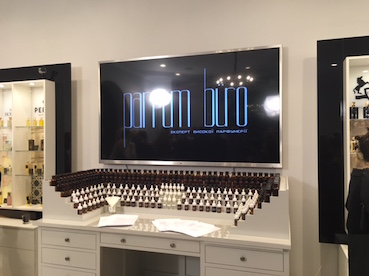 香水は様々な種類がありましたが、全体的になかなかワイルドな匂い。ただ一つ一つの香水のコンセプトや名前が面白い。"Fin du monde(世界の終わり)""Make Parfum not make War(戦争をせずに香水を作れ)""69 Archive(この会社の本社でダンナの思い入れのあるパリの通り)"などなど。