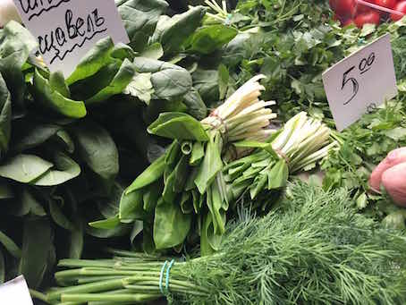 さて、今回の目的はこの季節限定の「チェレムシャ」。最初「武者!?」とか思っていましたが、ググってみると「行者にんにく」のことなんですね。バーブシュカが道端でかなり安く売っているとお聞きしていましたが、今回は一束5グリブナ(22円ほど)で二束購入!