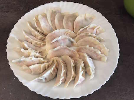 そして今回は幸運なことに、先日ロンドンに行った際に、ジャパン・センターで餃子の皮を買っていたのです!ということで、薄い皮を用いて日本の餃子ができました。