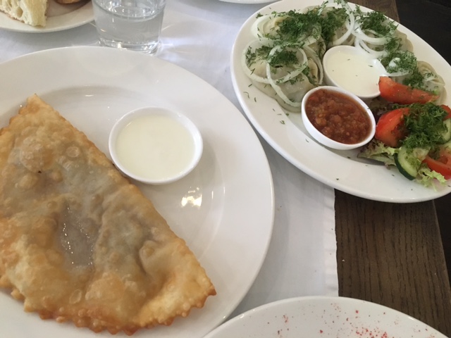 典型的なクリミア料理「チェブレク」、そして奥が「マンティ」