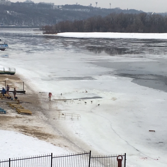 しかも氷を溶かして、おじさん・おばさんが全裸で入水しているではないか。この日は久しぶりに0度を超えたとはいえ、かなり寒いですよ。どうやら体を清める正教の儀式「神現祭」というのを遅ればせながら個人グループでやっていたいみたい。ひと潜りすれば、さすがに砂浜(といっても雪浜)に戻ってすぐに服を着用していました。そりゃ、寒いで。