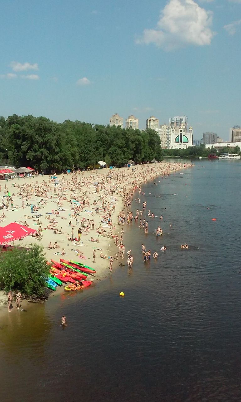 ソ連時代に作られた「水」をモチーフにした公園で、市内を流れるドニプロ川の中州で、たくさんの人が日焼けをしたり、読書したり、筋トレしたり、バレーボールに興じていました。