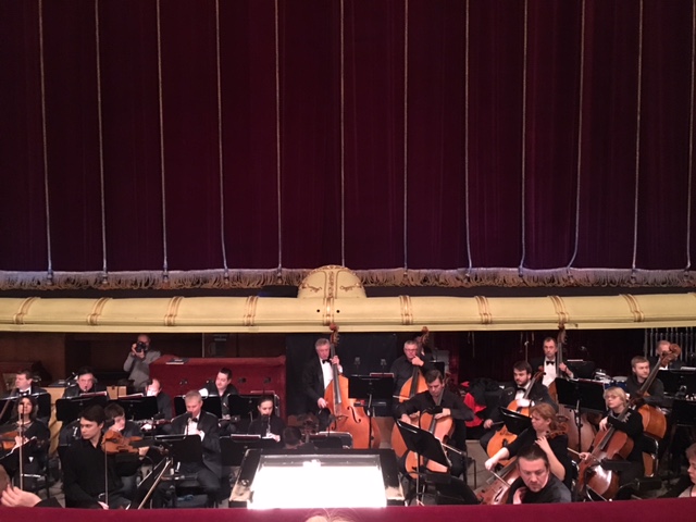 オーケストラが目の前。音もすごくよかった。日本では絶対取れない席です。