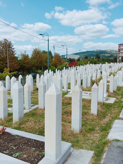 真新しい白い墓石の数々。刻まれた没年は、のきなみボスニア紛争の起きていた1992年~1995年です。