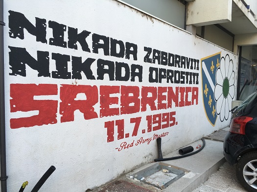 モスタルの街中の壁にも書いてありました。「スレブレニツアを忘れない」と。