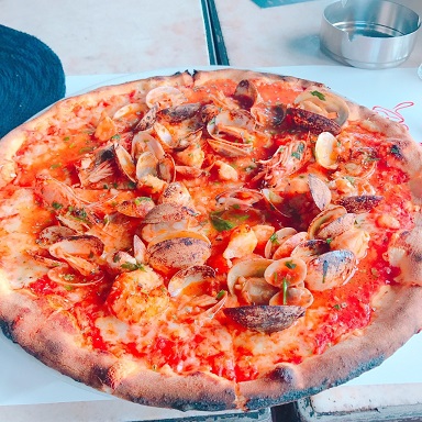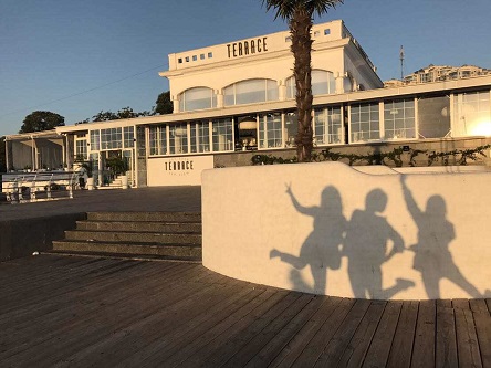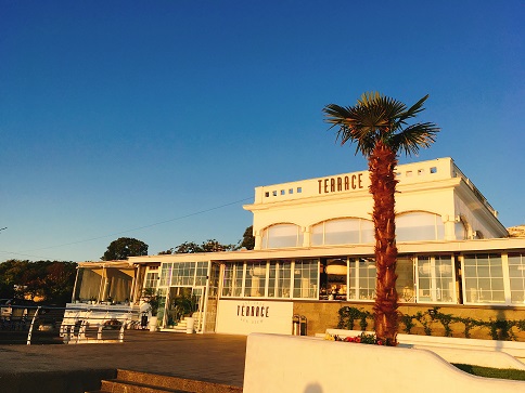 最初の目的地は海辺のカフェ!まだ他は何もあいてないから、とりあえずコーヒーを飲みに。