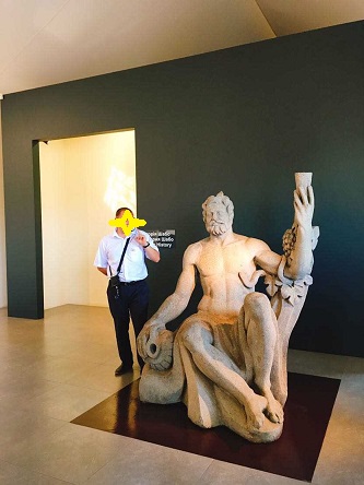 入口にはお酒の神様、バッカスの大きな銅像が。