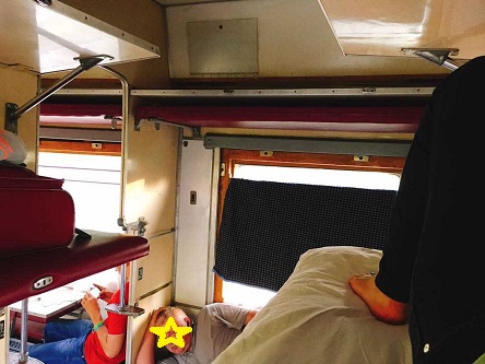 (夜が更けた頃には、車掌さんも忙しくなったようで、コンパートメントにくる頻度がぐっとさがり、楽になりました。)