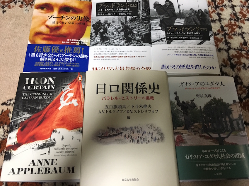 ヒトラーとスターリンの間で犠牲になった「ブラッドランド(流血地帯)」の国(ウクライナ含む)の犠牲者の歴史。これは英語版はもちろん、ロシア語版も持っています。キエフでは著者ティモシー・スナイダー教授の講演を聞いてちゃっかりサインももらっています。日本では最近発売されて、朝日新聞と日経新聞でも書評されていた話題の書です。