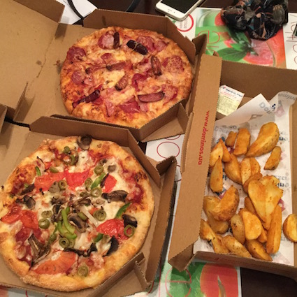 二つのピザ、そしてポテトで1200円くらいでしょうか。味も悪く無い!