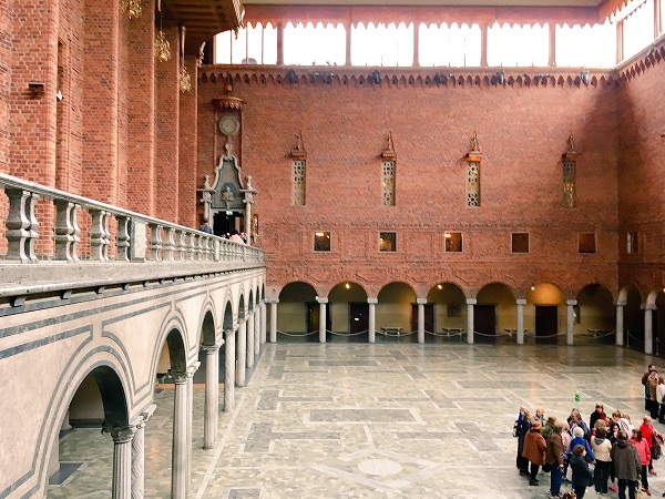 市庁舎の「青の間」。こちらは、ノーベル賞の受賞祝賀晩餐会が開かれる広間です。(授賞式は違う場所なので、ご注意を!)