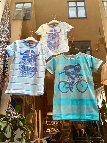 こちらのTシャツ!!ヴァイキングが自転車こいでたりして、めちゃくちゃかわいい!!!自分に一枚欲しかったけど、このデザインのは子供用しかなかった。大人用の柄はいまいちだった。