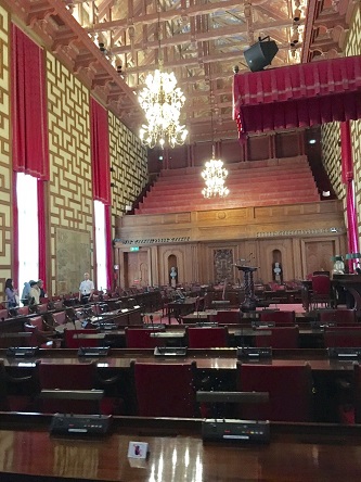 それから、市庁舎は現役なので、議会なんかもあります。我々が訪問した際は夏休みだったので、使われておらず、おかげで見学できました。