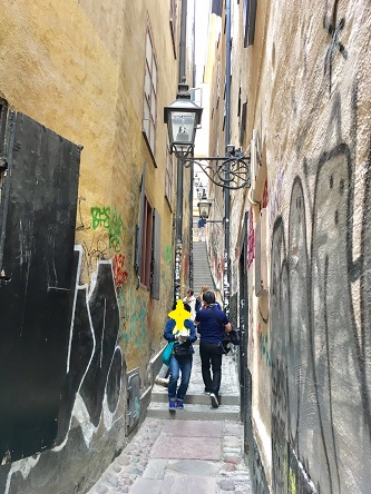 ガムラスタン地区の一番細い路地、モーテン・トローツィグ・グレンは観光名所になっています。