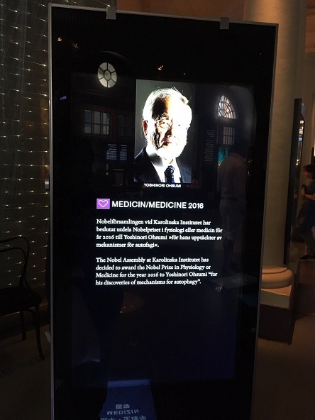 中はこんな感じで、色んな受賞者の色んな研究や受賞内容が展示されている。川端康成のインタビューなんかも流れてました。