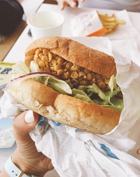 友人オススメのフィッシュ・バーガーにしました。バンズが胚芽でヘルシーな感じ。おいしい!