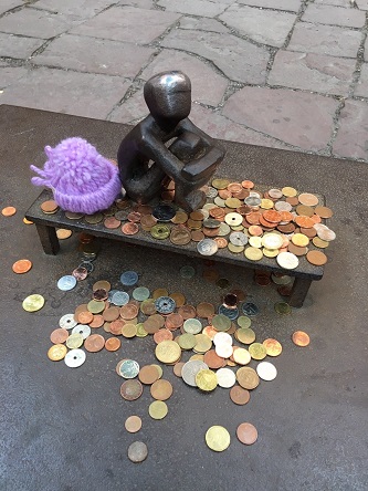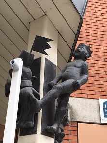 こちらは、フィンランド教会の裏庭にいる、隠れ名物(らしい)アイアンボーイ。
