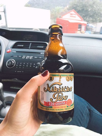 途中お兄さんが「スーパーに寄るけど、ビール好き?」と聞かれて、「??好き」と意味もわからず回答すると、早速モンテネグロビールをご馳走してくれました。