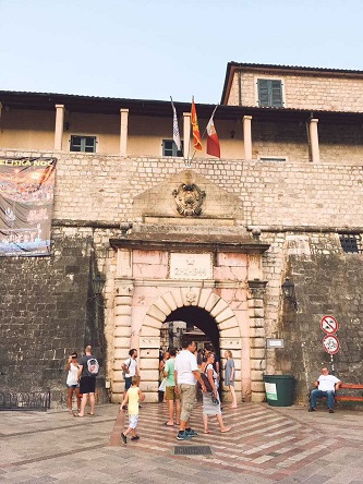 ティヴァト空港から車で15分程で、世界遺産の旧市街、コトルの街に到着です。
