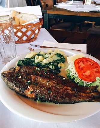 友人はお魚(マス)を注文。海から随分遠いところに来てしまったのがわかります。