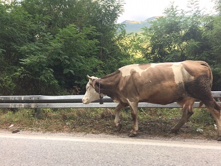 道中、牛さんと併走。牛飼いのお嬢さんが先導していました。