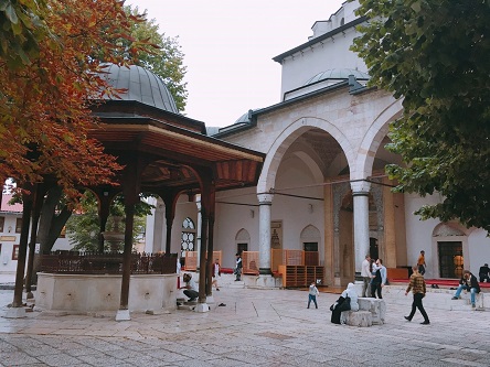 早速ミナレットが見えてきて、たどり着いたのはモスク、ガジ・フスレヴ・ベグ・ジャーミヤ。にぎわっています。