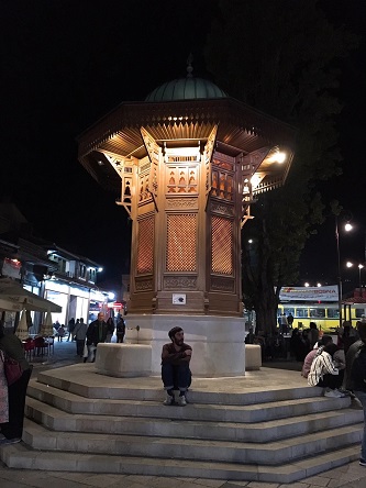 それから、こちらがサラエボ旧市街の名所、水のみ場のバシュチャルチャ。