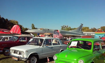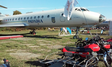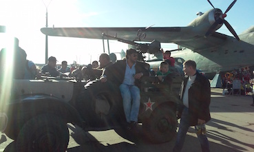 会場は、ソ連時代の戦闘機や民間旅客機が野ざらしに常設展示されている航空博物館。これまでキエフで参加したイベントでは考えられないほどたくさんの人が遊びに来ていました。