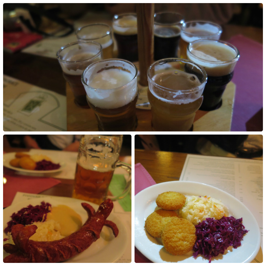 ちなみに隣の席には、黒ビールを夫婦二組で4リットル飲んでいる強者グループが。さすがチェコですね。そして写真下は、ビール飯!ソーセージもスパイス効いていておいしいし、チーズ揚げも名物なのかな、どこの店にもありました。