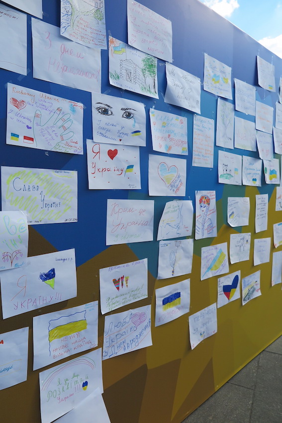 ウクライナに平和が訪れるよう皆で寄せ書き。