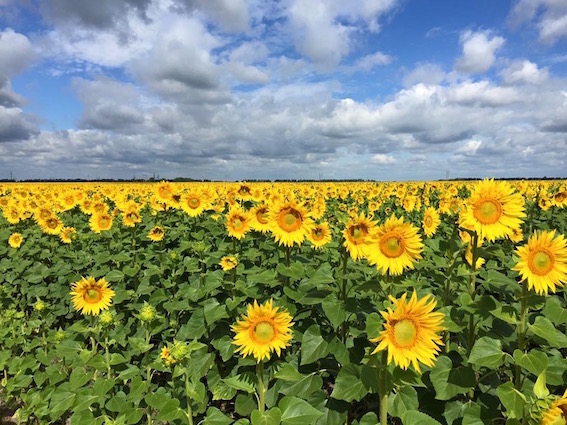 先日のひまわり畑もここで発見しました(「ひまわり」にコメントくださった方、ありがとうございます!)。日本ではなかなか出会わない地平線がきれいに見えます。