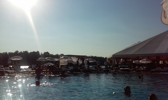 セキュリティ・チェックを受けて入場すると、大きめのプールがあり、その周りに日焼けや読書をしに来た人がデッキチェアでゆっくりしています。DJがいい感じに音楽をかけ、バカンス地でよく見かけるあの風景が広がっています。