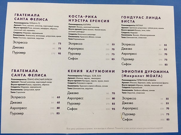 ・カプチーノ :27グリブナ(約110円)←コスパ的には最強です!!