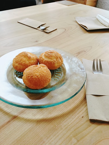 シュークリームとカプチーノ。コーヒーとても香ばしい!