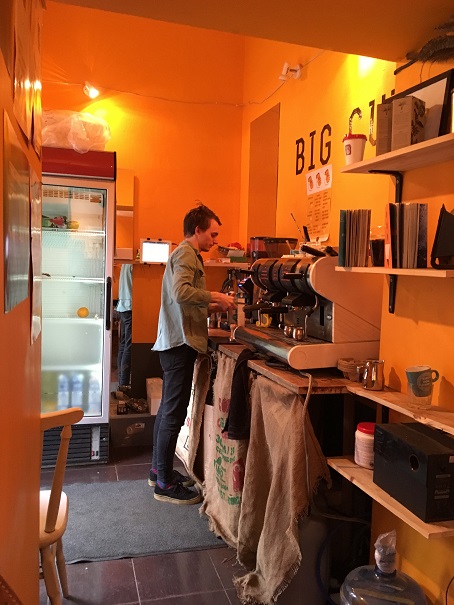 こちらも小さな1畳位のスペースでやってるカフェ。カウンター席が3つくらいと、小さなテーブルが一つありました。