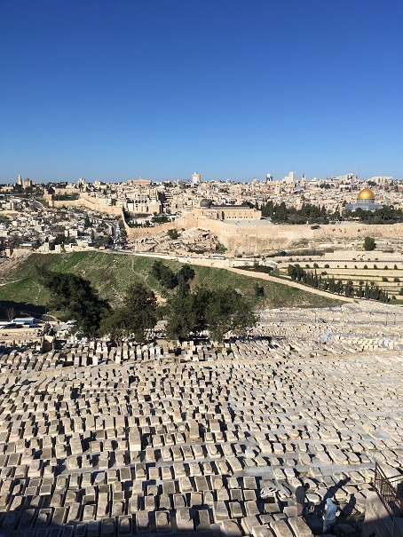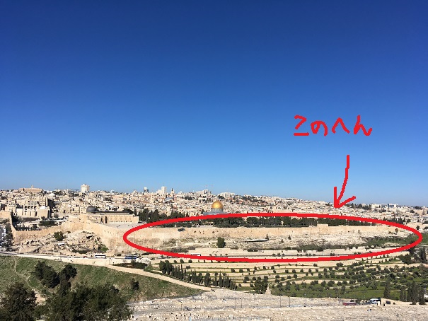 そして、もう一つ印象的だったのが、オリーブの丘から見える、エルサレム旧市街を囲む壁の手前にもあるお墓。写真だとわかりにくいんですが、このへんもお墓なんです。