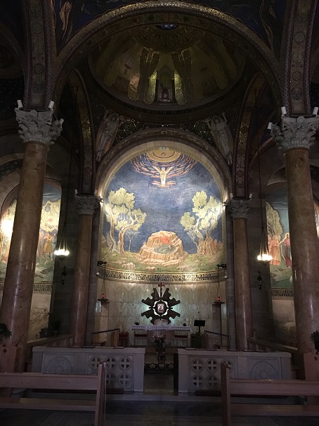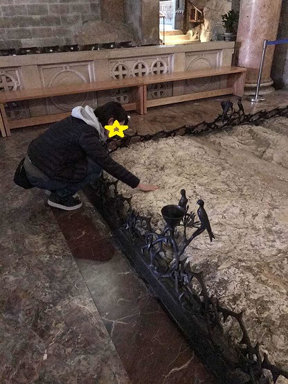 最後の晩餐のあと、イエスが祈り続けた岩を取り囲むようにして建てられたのが、この教会。中に入ると、中央にイエスがひざをついたと言われる岩が。
