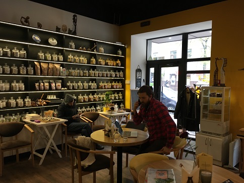 奥にはウクライナデザイナー作と思われる、おしゃれな洋服を売るショップゾーンもあります。友達とちょっとお茶、とかおしゃべり、とかを目的とした場合に良さそうです。